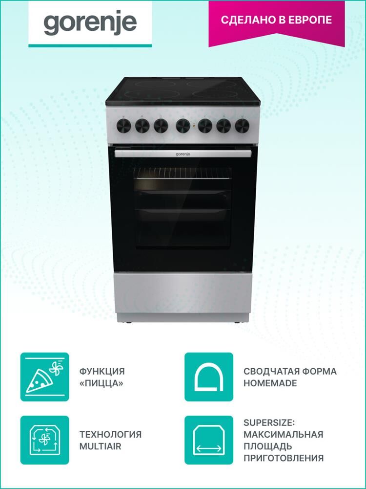 GORENJE Электрическая плита GEC5B41SG, стеклокерамика, без крышки, серый