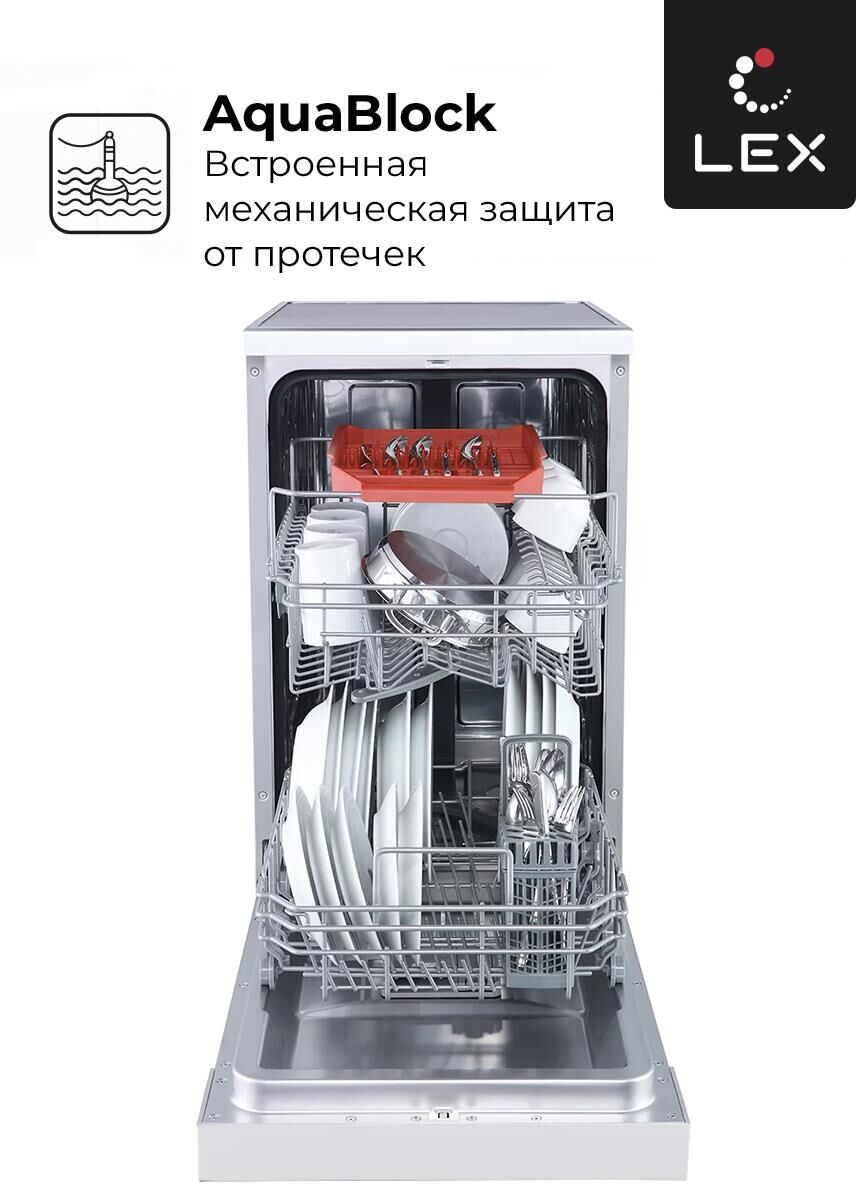 LEX Посудомоечная машина DW4563N WH, узкая, напольная, 44.8см, загрузка 11 комплектов, белая [chga00