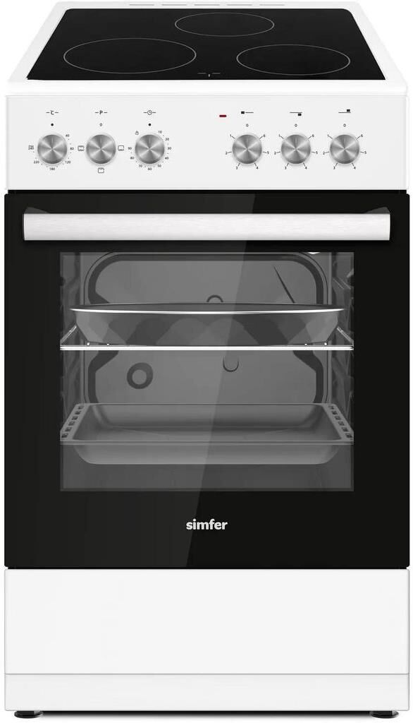 SIMFER Электрическая плита F55VW14025, стеклокерамика, электрическая, без крышки, белый/черный