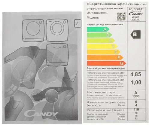 CANDY Стирально-сушильная машина Nova C33D4 474MBBW-07, с фронтальной загрузкой, с паром, 7кг, 1400о