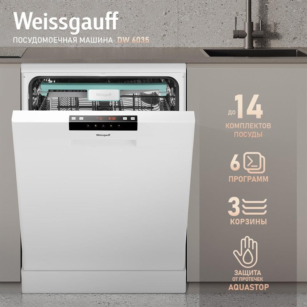 WEISSGAUFF Посудомоечная машина DW 6035, полноразмерная, напольная, 59.8см, загрузка 14 комплектов,