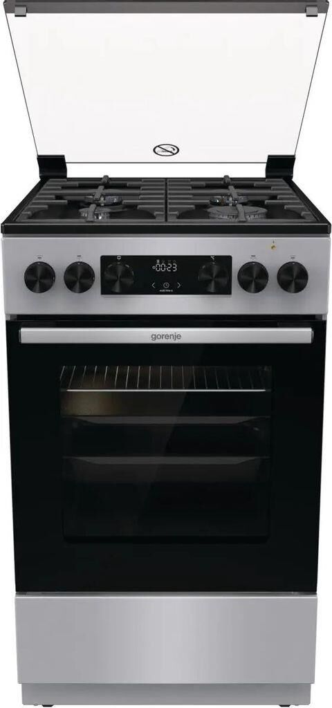 GORENJE Газовая плита GK5B44SF, электрическая духовка, стеклянная крышка, чугун, серебристый