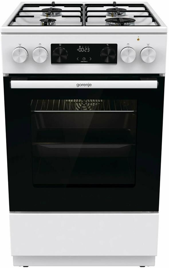GORENJE Газовая плита GK5C40WF, электрическая духовка, стеклянная крышка, чугун, белый