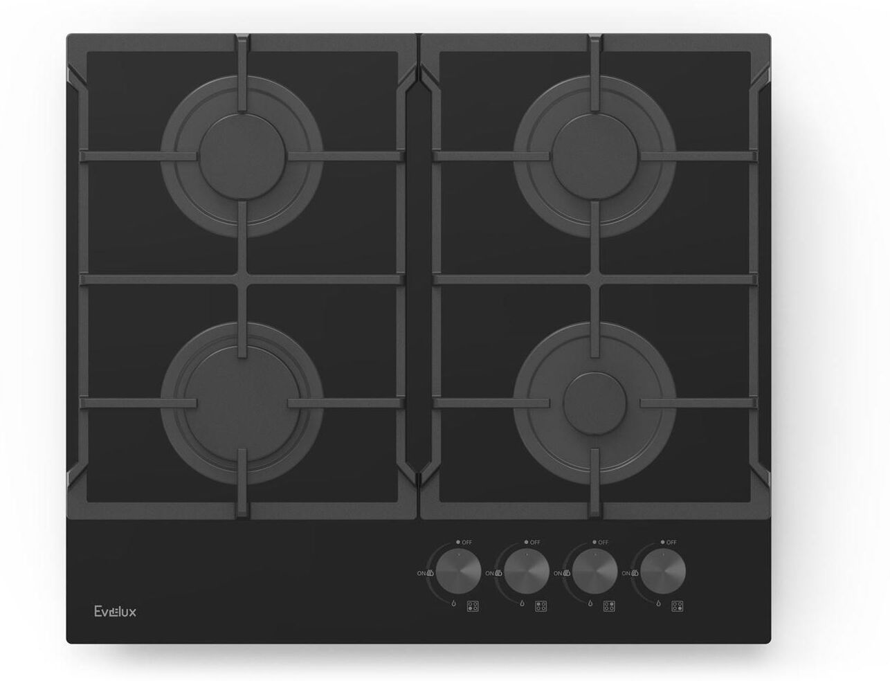 EVELUX Газовая варочная панель HEG 650 BG, 4 конфорки, закаленное стекло, черный