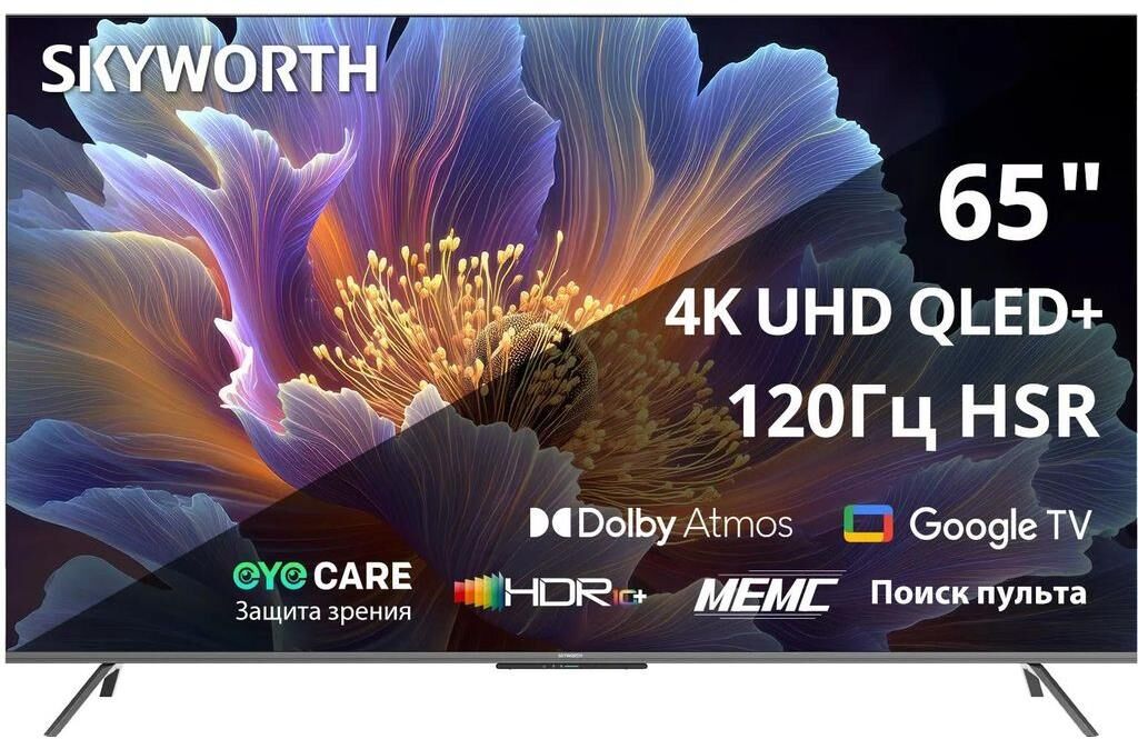 SKYWORTH 65″ Телевизор 65Q67H QLED+, 4K Ultra HD, черный, СМАРТ ТВ, Google TV