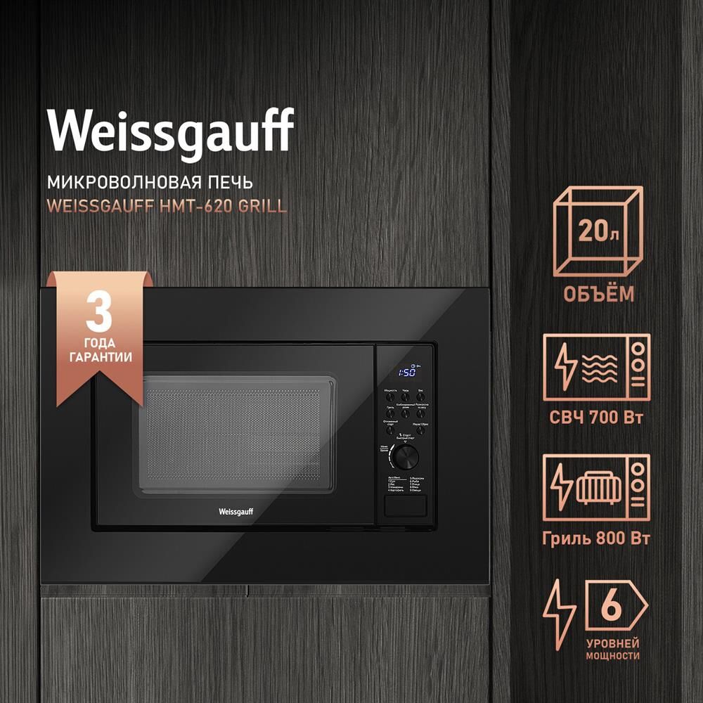 WEISSGAUFF Встраиваемая микроволновая печь HMT-620 Grill, 20л, 700Вт, черный [429658]