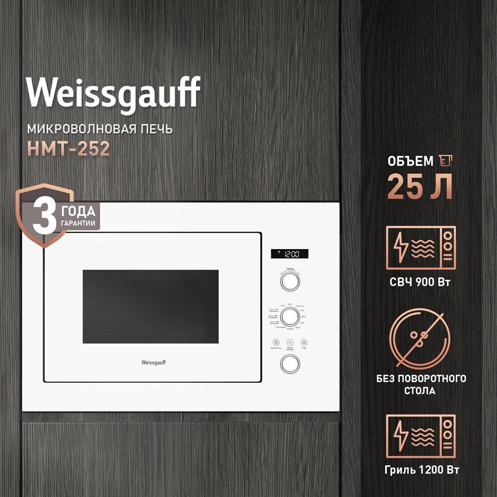 WEISSGAUFF Встраиваемая микроволновая печь HMT-252, 25л, 900Вт, белый [426284]