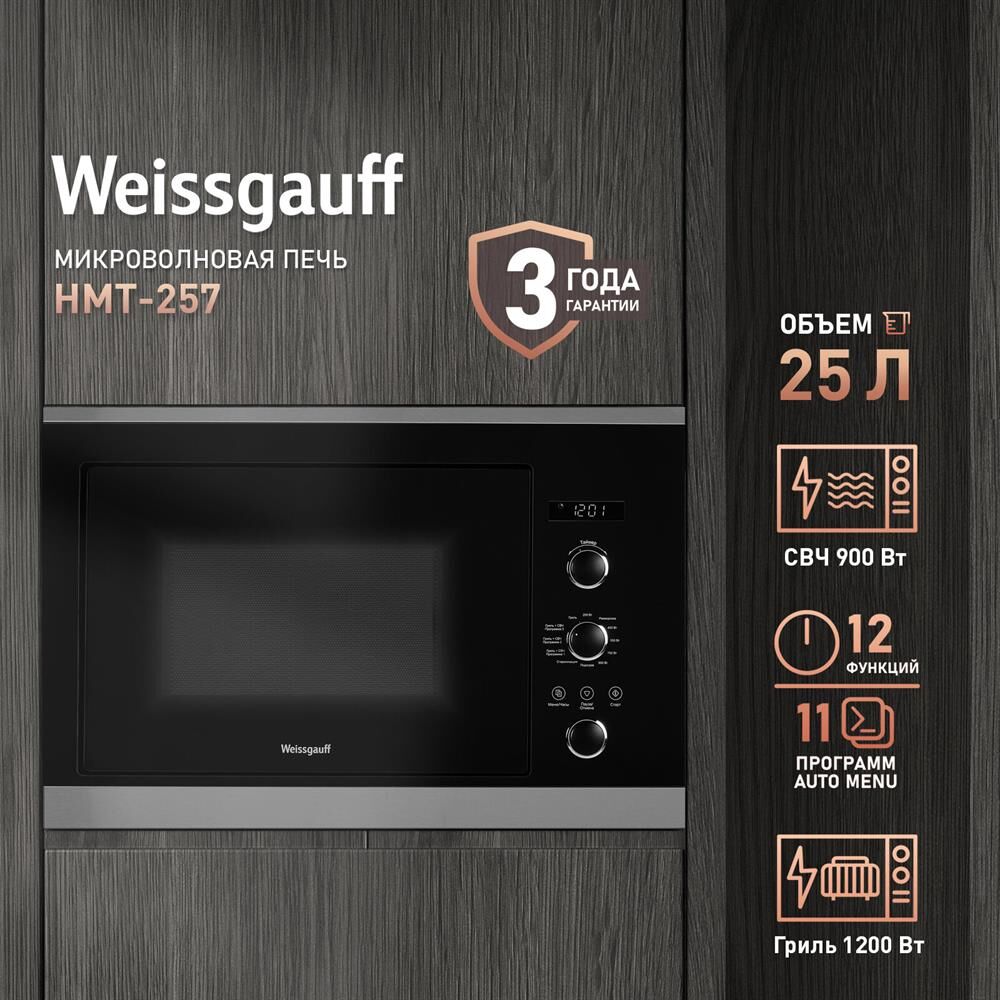WEISSGAUFF Встраиваемая микроволновая печь HMT-257, 25л, 900Вт, черный [426287]