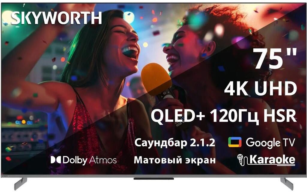 SKYWORTH Телевизор QLED 75″ 75Q75G Magic Sound Karaoke TV Frameless черный/черный 4K Ultra HD 120Hz
