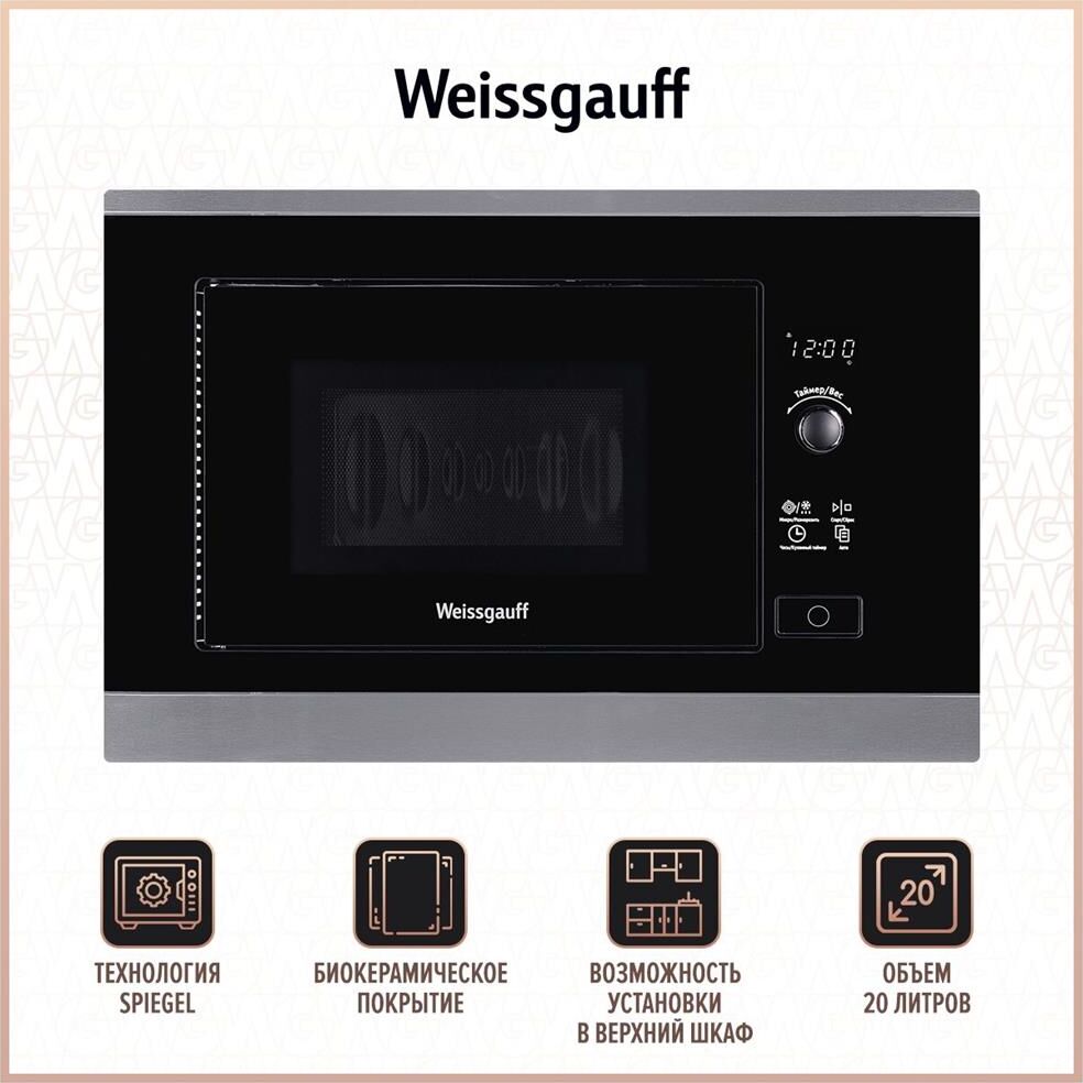 WEISSGAUFF Микроволновая печь HMT-207 20л. 700Вт черный/нержавеющая сталь (встраиваемая)