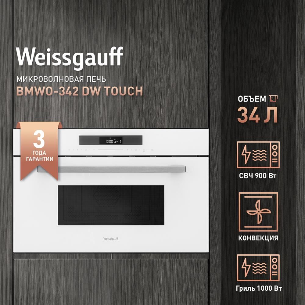 WEISSGAUFF Встраиваемая микроволновая печь Premium BMWO-342 DW Touch, 34л, 900Вт, белый [430202]
