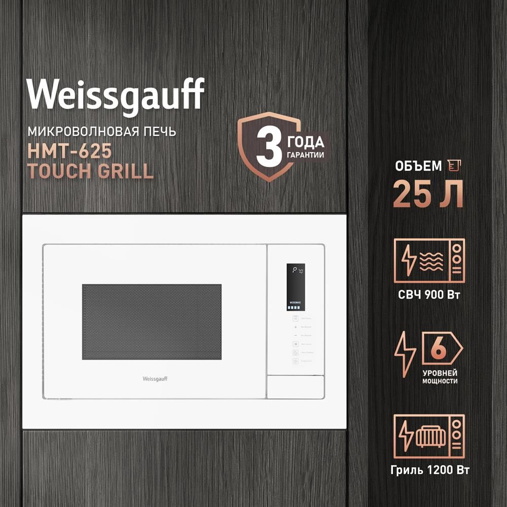 WEISSGAUFF Встраиваемая микроволновая печь HMT-625 Touch Grill, 25л, 900Вт, белый [433076]