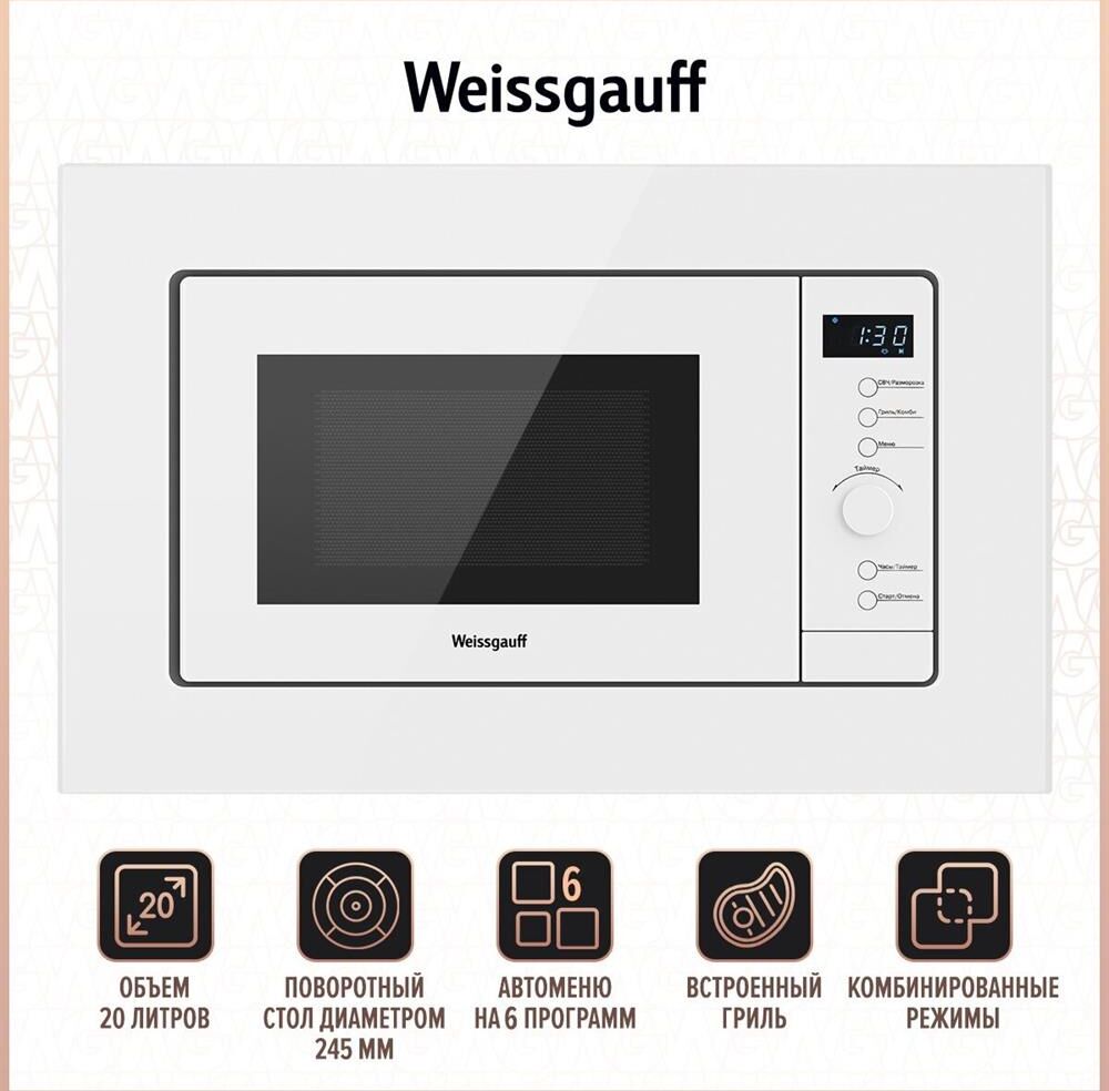 WEISSGAUFF Микроволновая печь HMT-220 WG Grill 20л. 700Вт белый (встраиваемая)