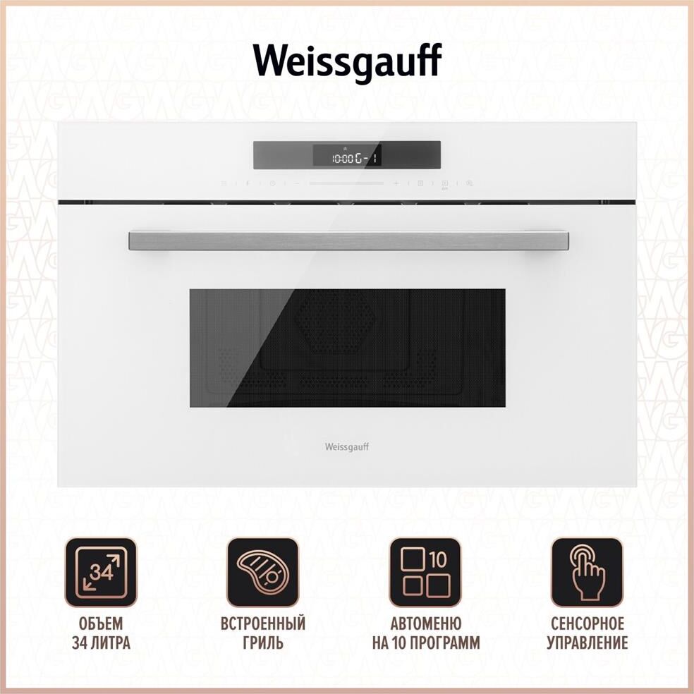 WEISSGAUFF Микроволновая печь BMWO-342 DW Touch 34л. 900Вт белый (встраиваемая)