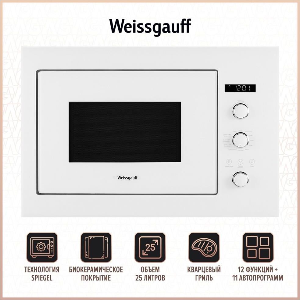WEISSGAUFF Микроволновая печь HMT-252 25л. 900Вт белый (встраиваемая)