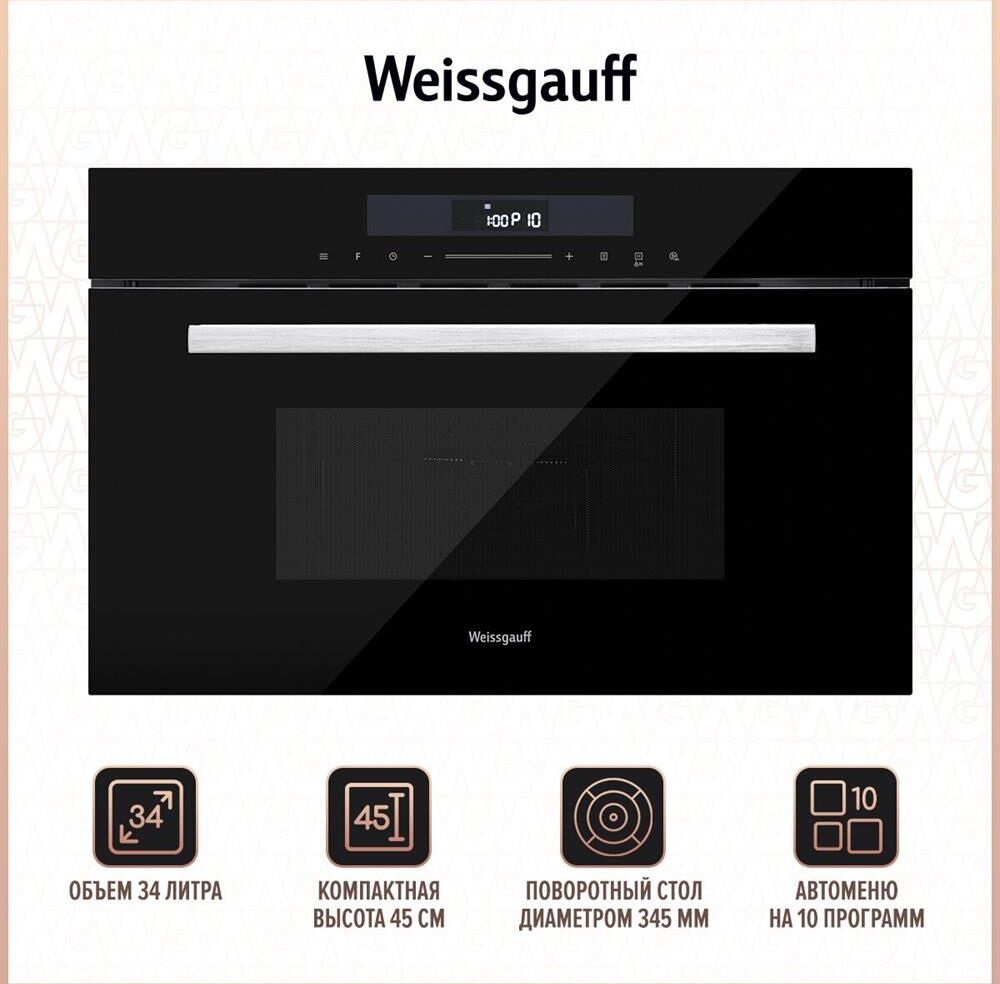 WEISSGAUFF Микроволновая печь BMWO-341 DB Edition 34л. 900Вт черный (встраиваемая)