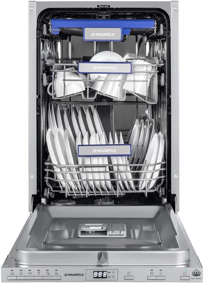 MAUNFELD Встраиваемая посудомоечная машина MLP-082D, узкая, ширина 44.8см, полновстраиваемая, загруз