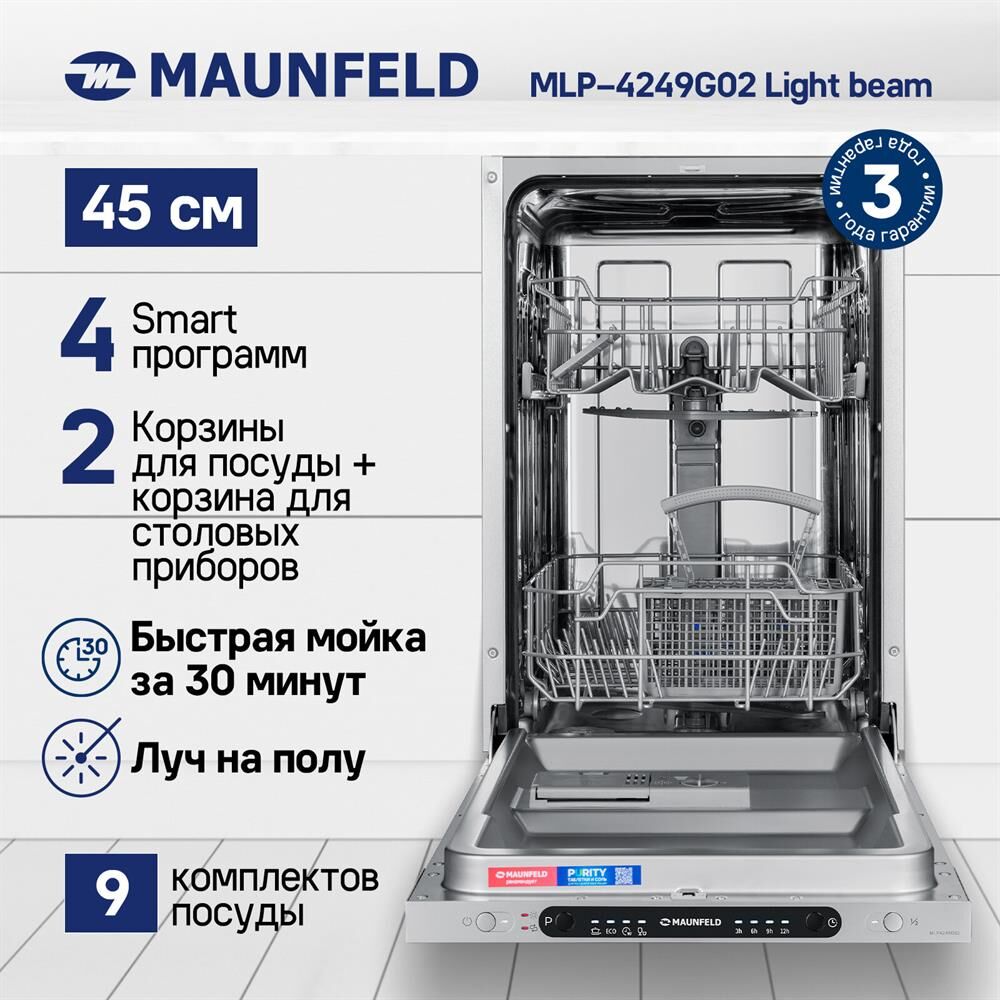 MAUNFELD Встраиваемая посудомоечная машина MLP4249G02 Light Beam, узкая, ширина 44.8см, полновстраив