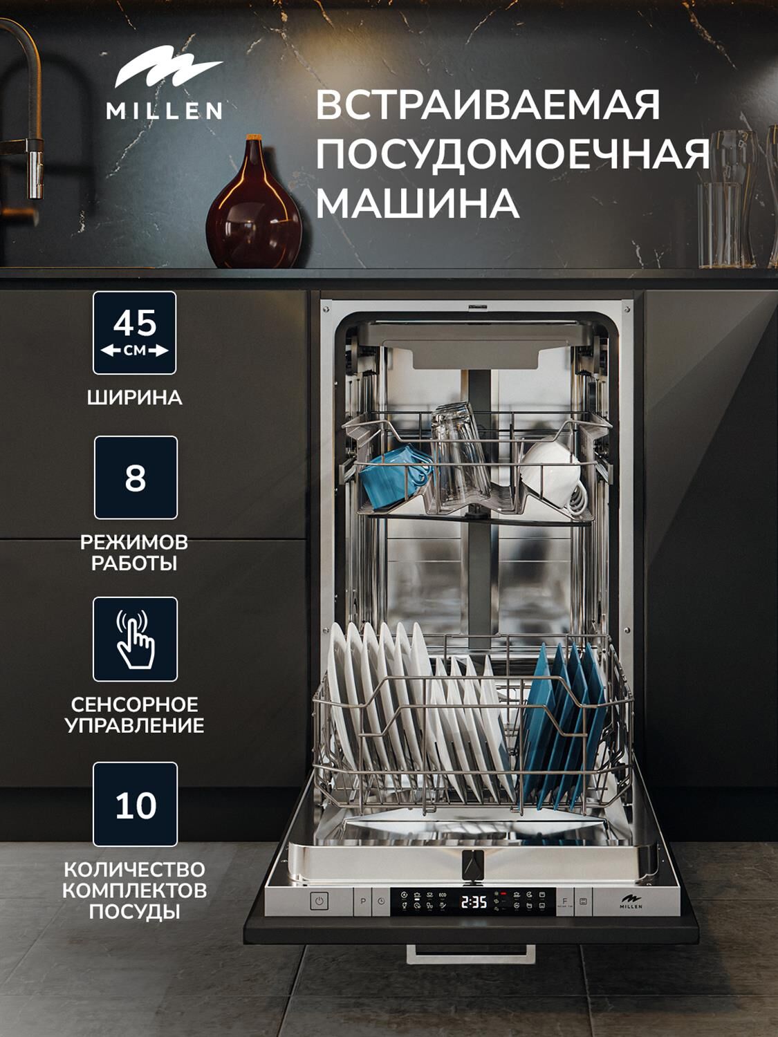 MEFERI Встраиваемая посудомоечная машина Light MDW4562, узкая, ширина 44.8см, полновстраиваемая, заг