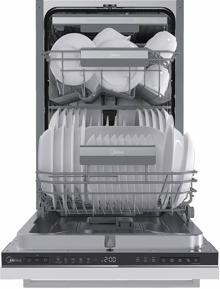 MIDEA Встраиваемая посудомоечная машина MID45S050, узкая, ширина 44.8см, полновстраиваемая, загрузка