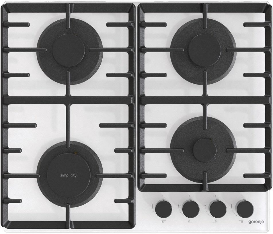 GORENJE Газовая варочная панель Simplicity GTW642SYW, 4 конфорки, закаленное стекло, белый