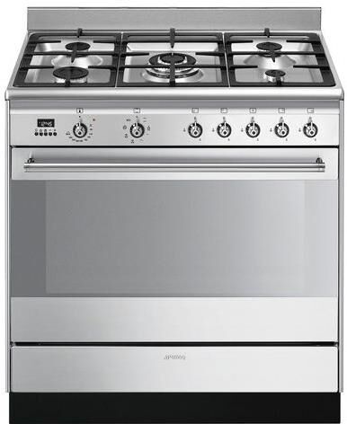 SMEG Газовая плита SUK91MFX9, электрическая духовка, без крышки, чугун, нержавеющая сталь