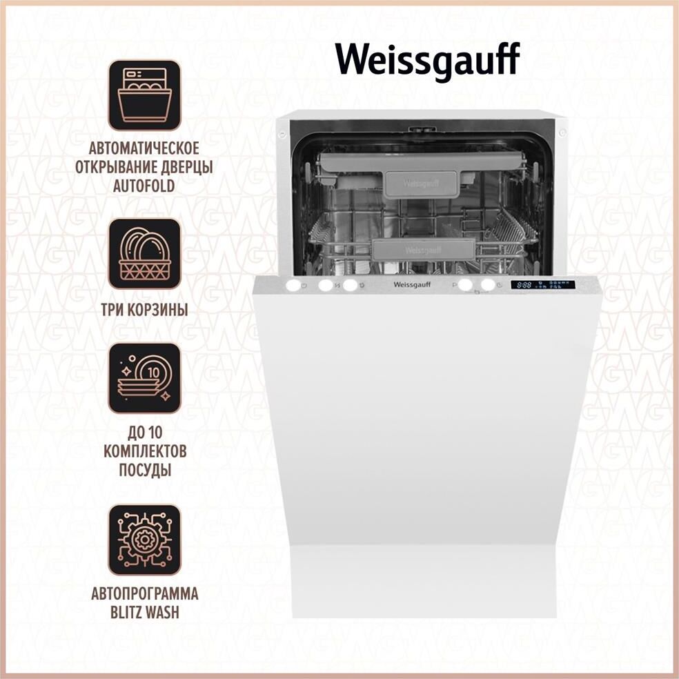WEISSGAUFF Посудомоечная машина встраив. BDW 4533 Wi-Fi Inverter Autoopen узкая инвертер