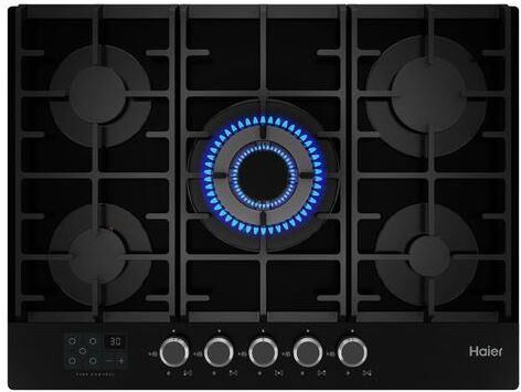 HAIER Газовая варочная панель HHX-G75CWSB, 5 конфорок, закаленное стекло, черный