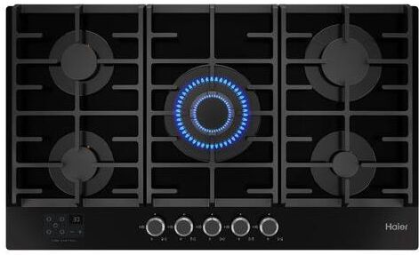 HAIER Газовая варочная панель HHX-G95CWSB, 5 конфорок, закаленное стекло, черный