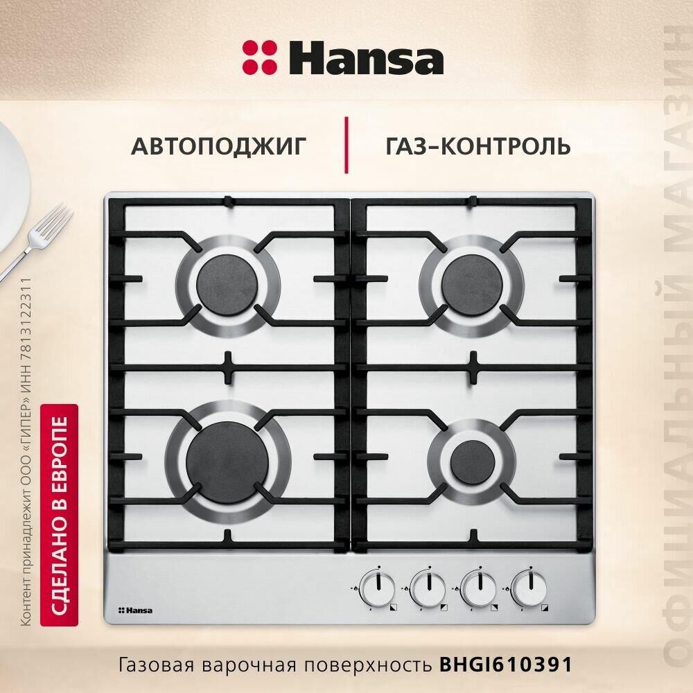HANSA Газовая варочная панель BHGI610391, 4 конфорки, нержавеющая сталь, серебристый