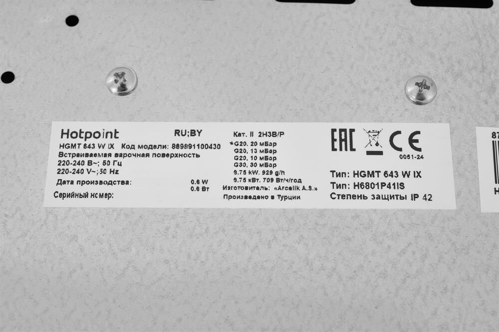 HOTPOINT HGMTS 643 W IX Нержавеющая сталь