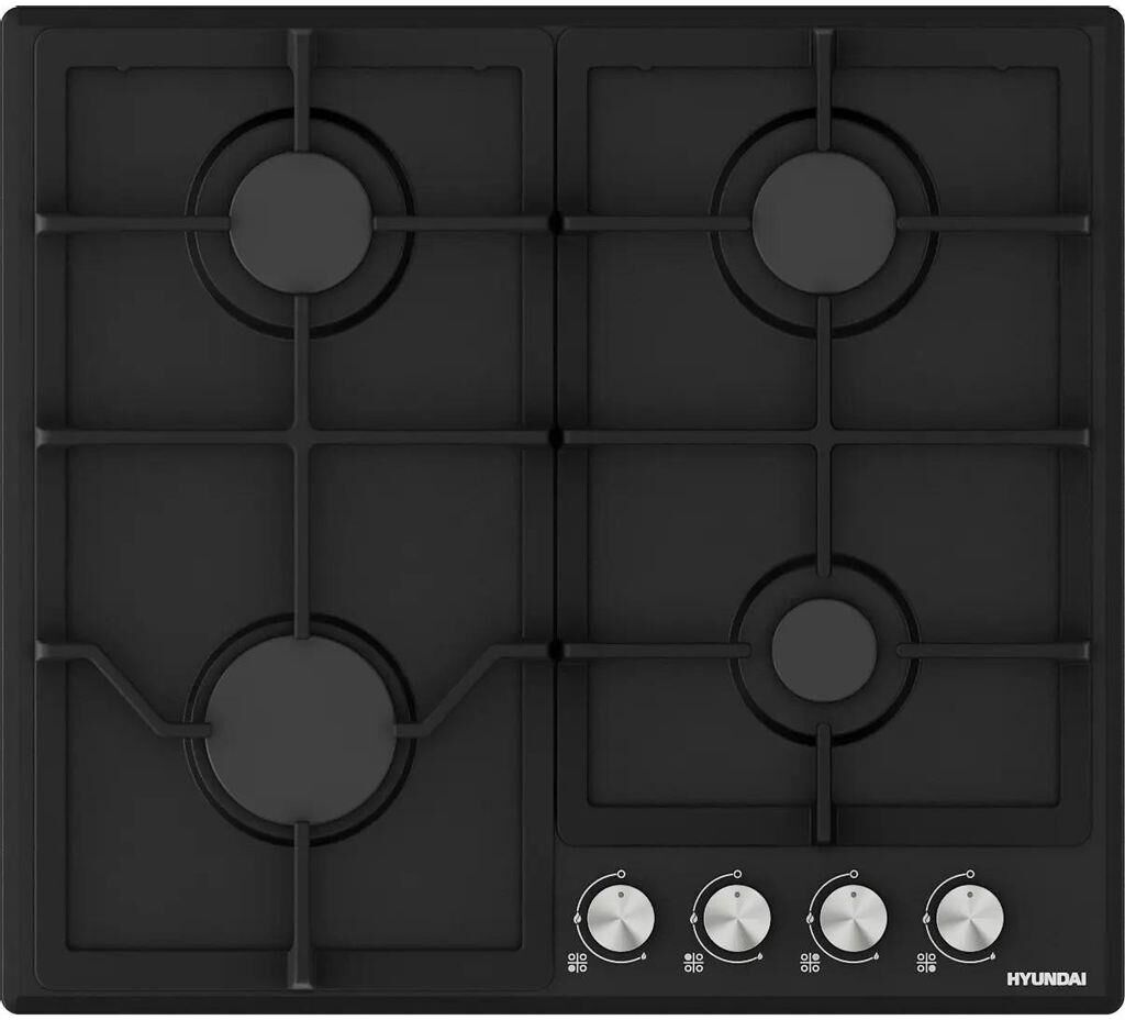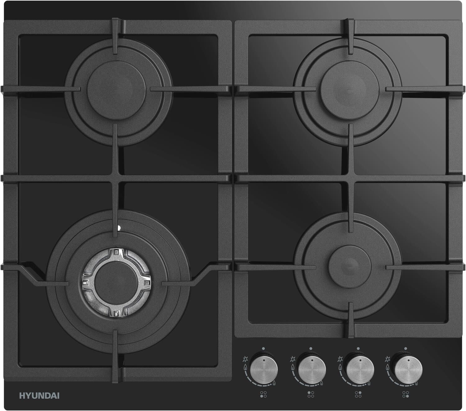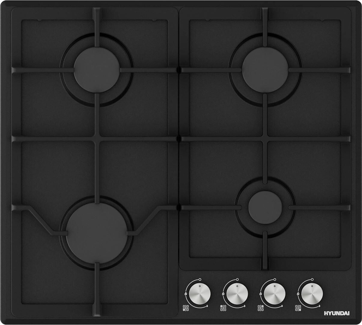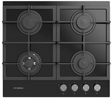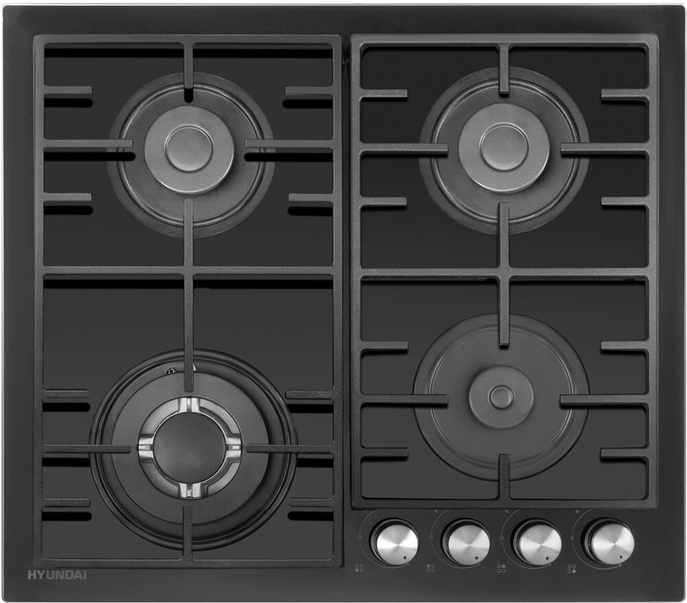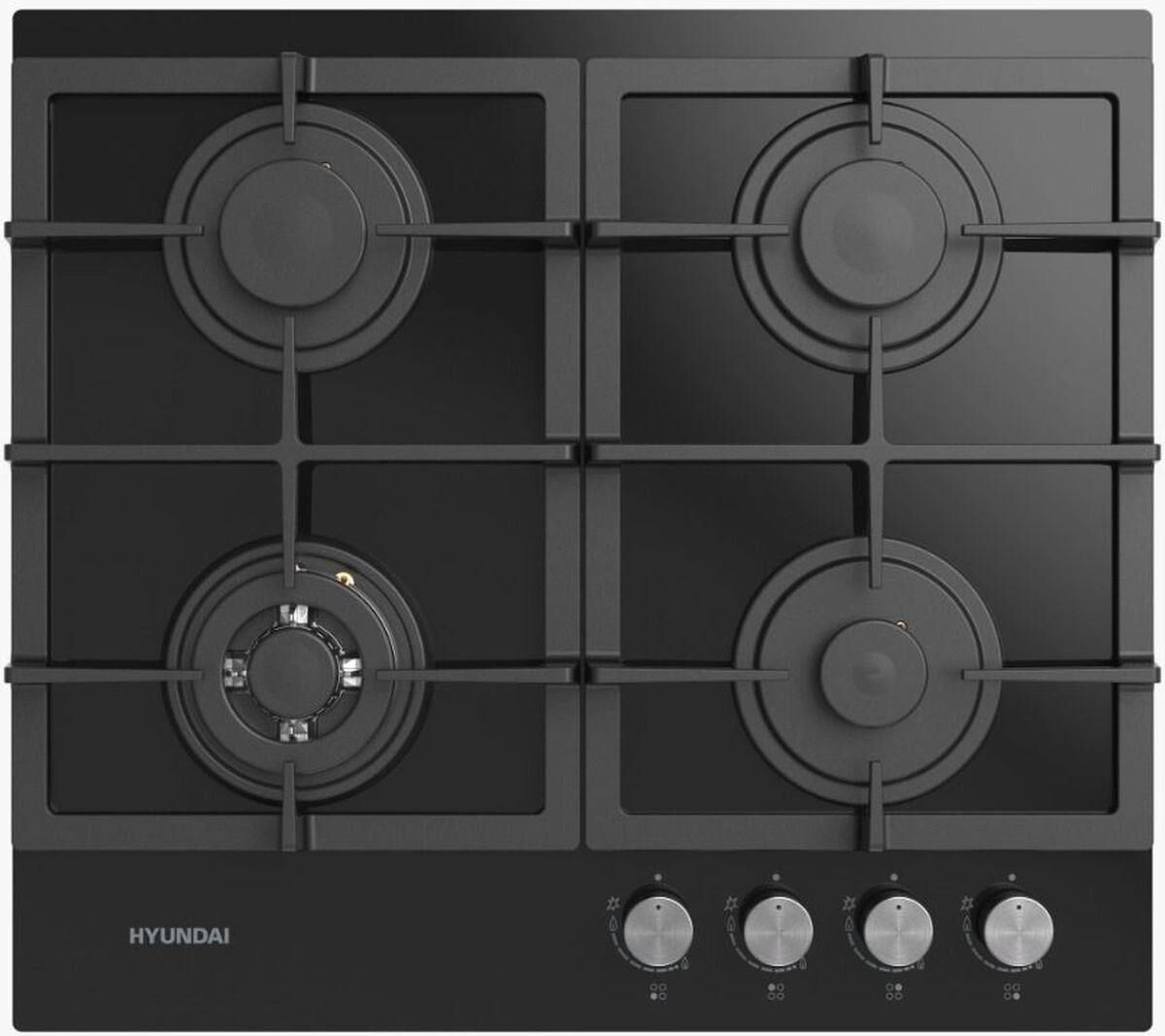HYUNDAI Газовая варочная панель HHG 6434 BG, 4 конфорки, закаленное стекло, черный