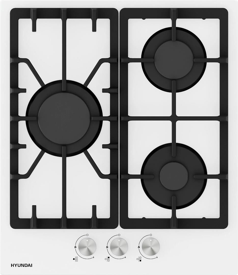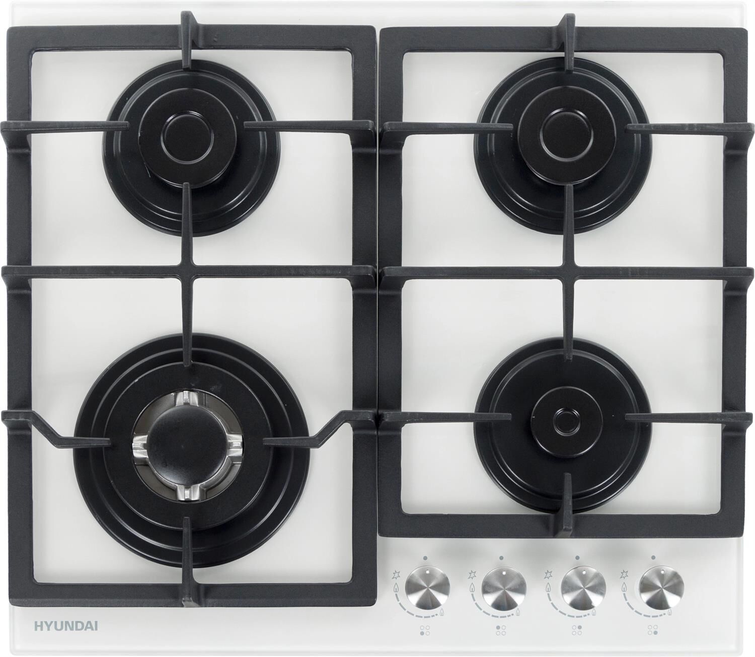 HYUNDAI Газовая варочная панель HHG 6438 WG, 4 конфорки, закаленное стекло, белый