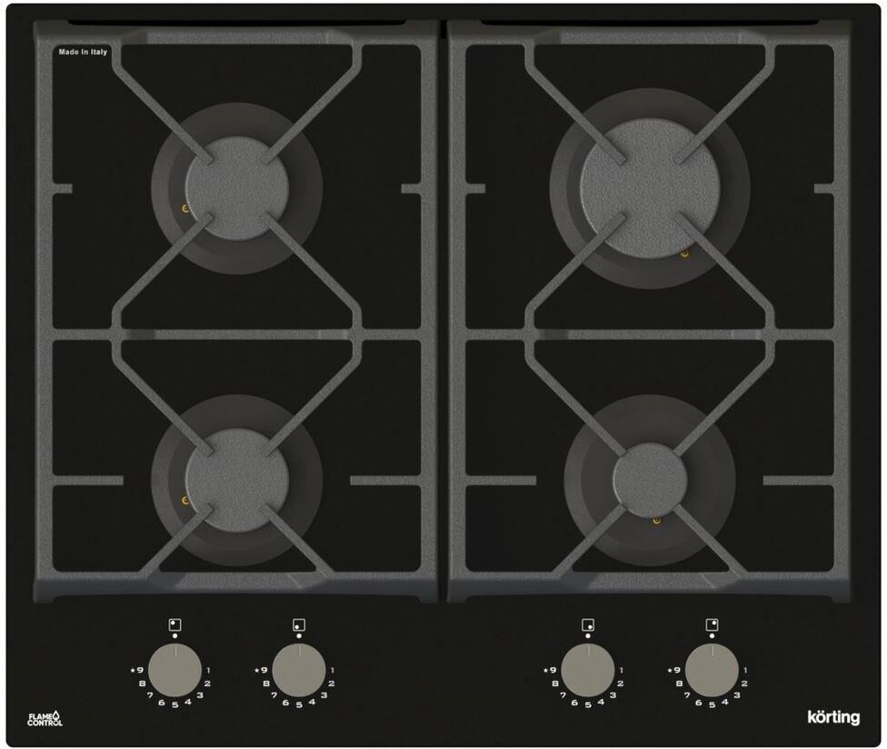 KORTING Газовая варочная панель HG 674 CTCN, 4 конфорки, эмалированная сталь, черный