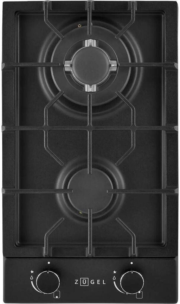 ZUGEL Газовая варочная панель ZGH291B, 2 конфорки, закаленное стекло, черный