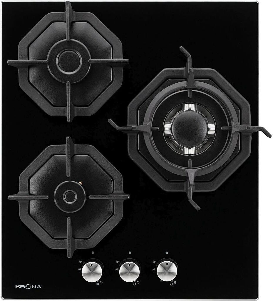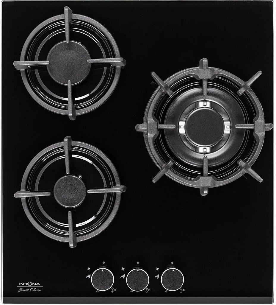 KRONA Газовая варочная панель Fiero 45, 3 конфорки, закаленное стекло, черный