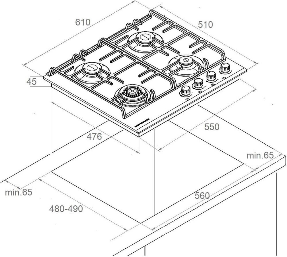 KRONA Газовая варочная панель Hagel 60 IX, 4 конфорки, нержавеющая сталь, серебристый