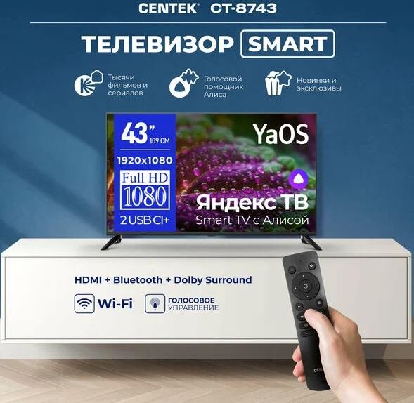 CENTEK CT-8843 SMART TV FullHD безрамочный