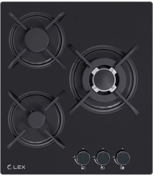 LEX Газовая варочная панель GVG 433 BBL, 2 конфорки, закаленное стекло, черный