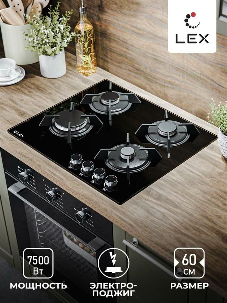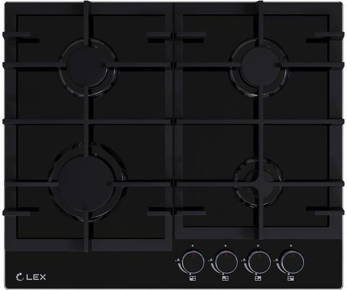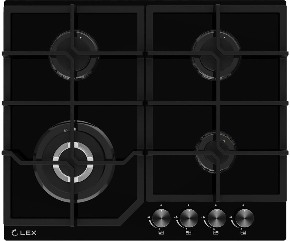 LEX Газовая варочная панель GVG 640-1 BBL, 4 конфорки, закаленное стекло, черный