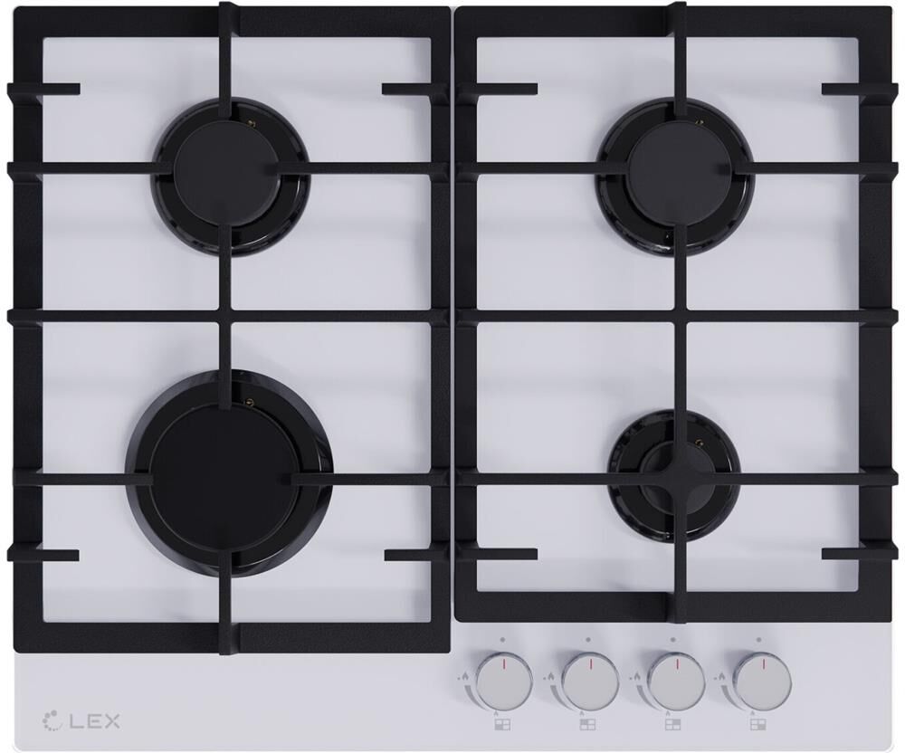 LEX Газовая варочная панель GVG 642-1 WH, 4 конфорки, закаленное стекло, белый