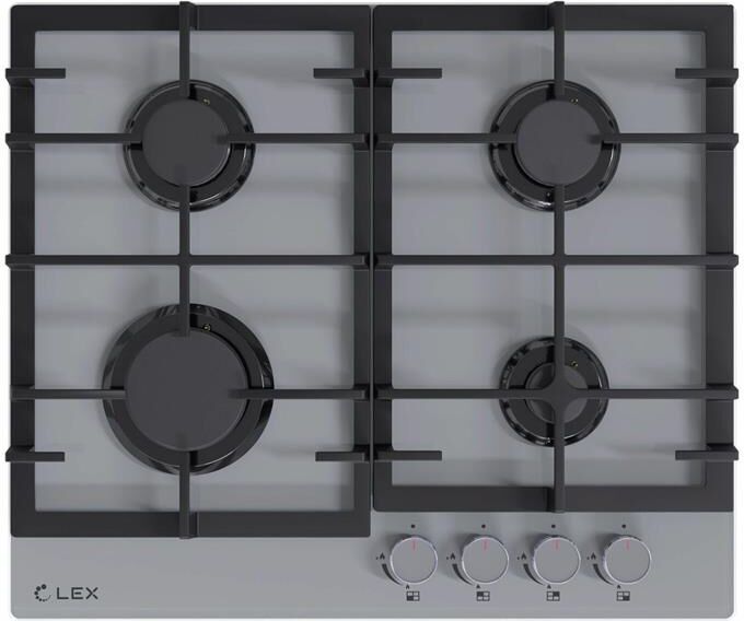 LEX Газовая варочная панель GVG 642-1 GR, 4 конфорки, закаленное стекло, серый