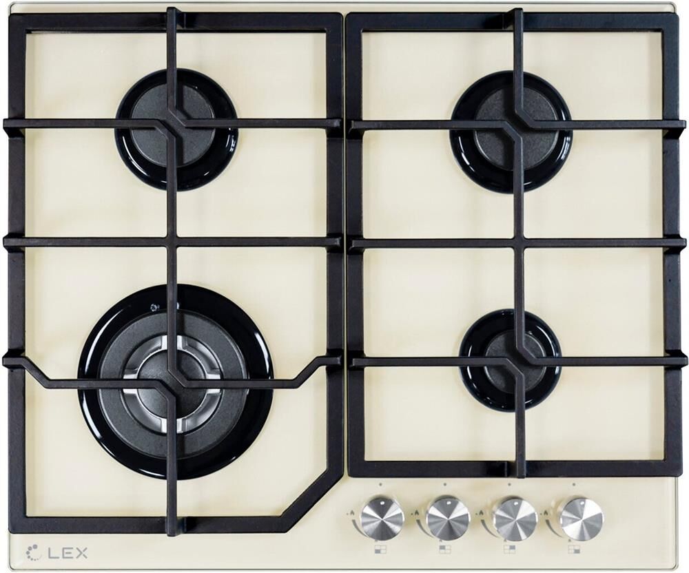LEX Газовая варочная панель GVG 6040-1 IV Light, 4 конфорки, закаленное стекло, белый