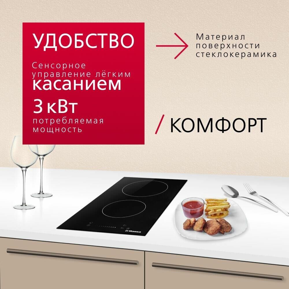 HANSA Электрическая варочная поверхность BHC331014, конфорок: 2 шт., стеклокерамика, независимая, че
