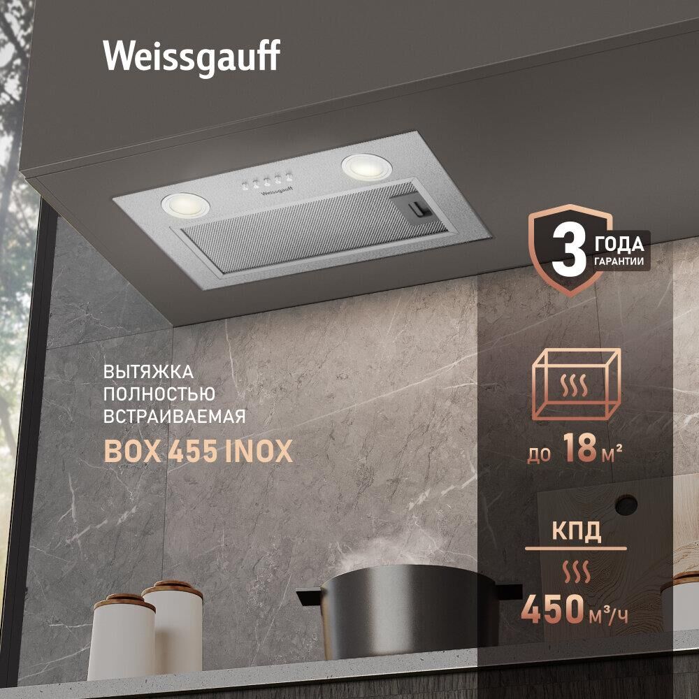 WEISSGAUFF Встраиваемая вытяжка Box 455 Inox, управление кнопочное, нержавеющая сталь [430309]