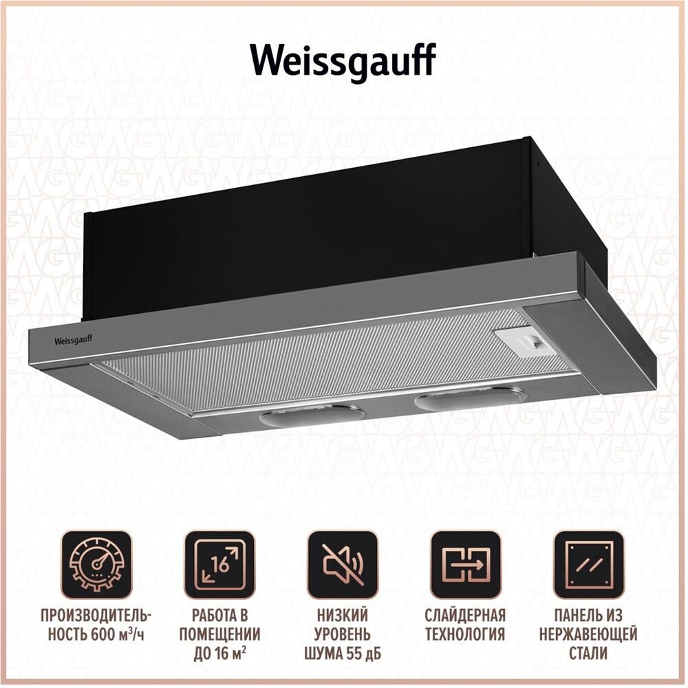 WEISSGAUFF Встраиваемая вытяжка Fiona 60 X, управление кнопочное, нержавеющая сталь [420857]
