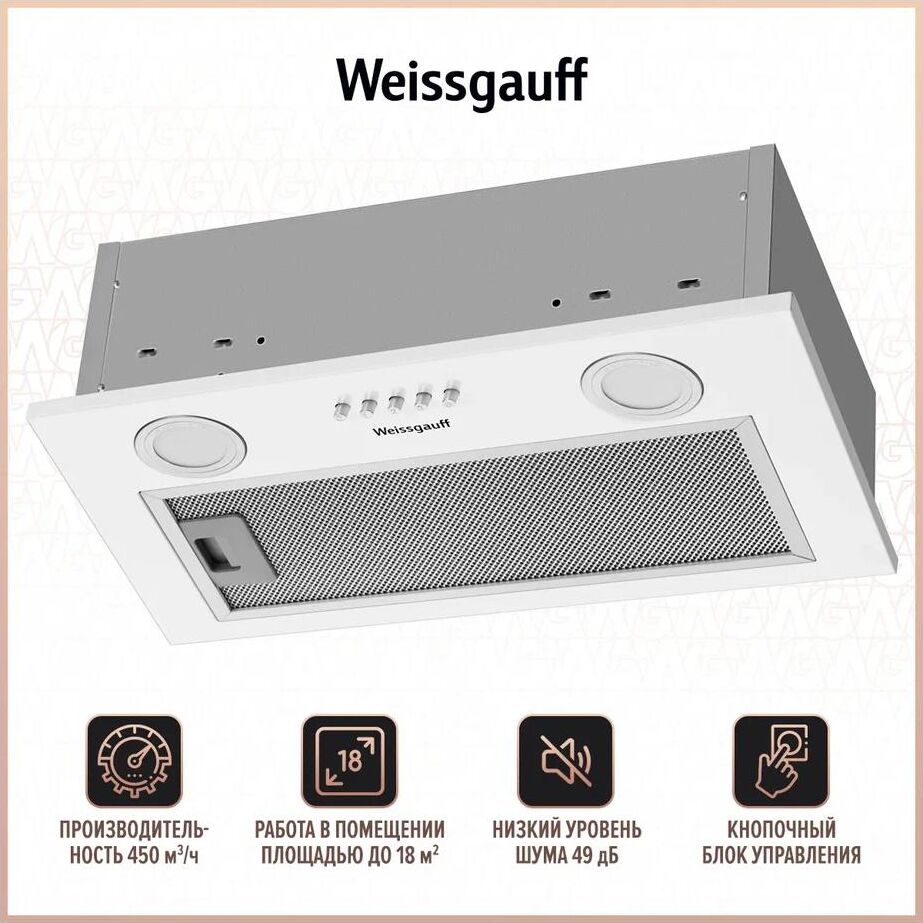 WEISSGAUFF Вытяжка встраиваемая Box 452 White белый управление: кнопочное (1 мотор)