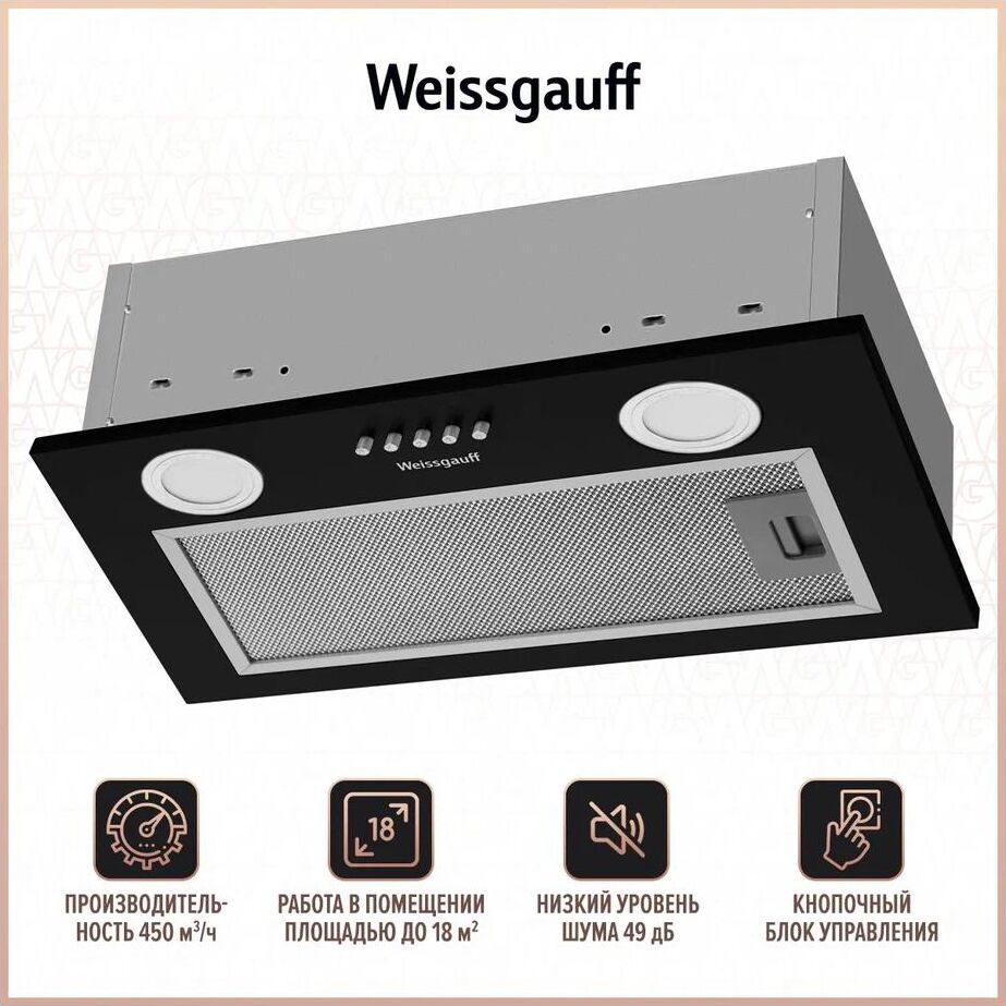 WEISSGAUFF Вытяжка встраиваемая Box 456 Black черный управление: кнопочное (1 мотор)