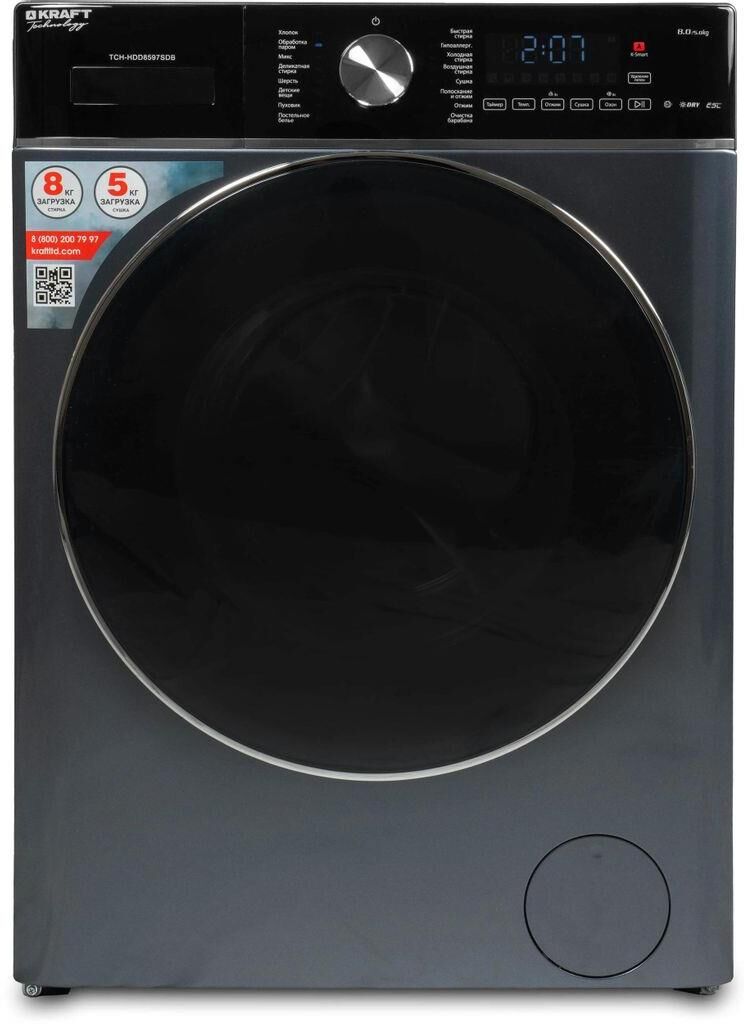 KRAFT Стиральная машина TCH-HDD8597SDB класс: B загр.фронтальная макс.:8кг (с сушкой) серый инвертор