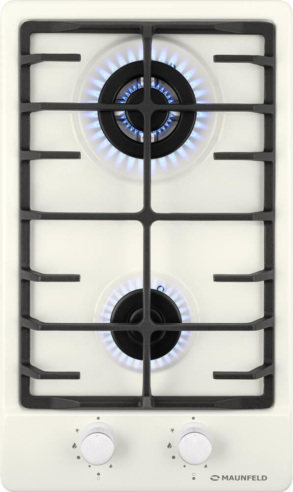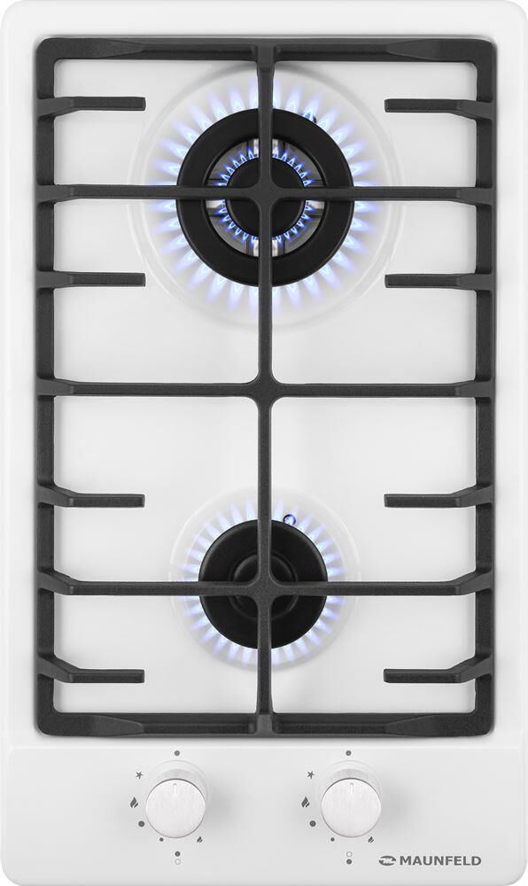 MAUNFELD Газовая варочная панель EGHE.32.3EWG, 2 конфорки, эмалированная сталь, белый